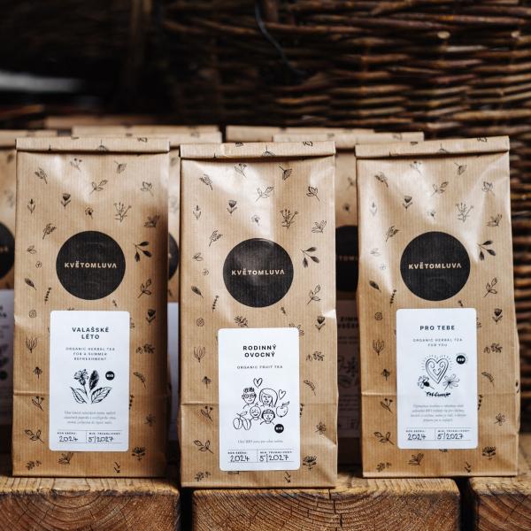 BIO bylinné čaje Květomluva vznikají především z bylin a jedlých květů, které sami pěstujeme u nás ve Vlachovicích, na jihu Valašska, v Chráněné oblasti Bílé Karpaty. Každá směs je tvořena s citem, respektem k přírodě, ručně a s důrazem na přirozenou chuť.